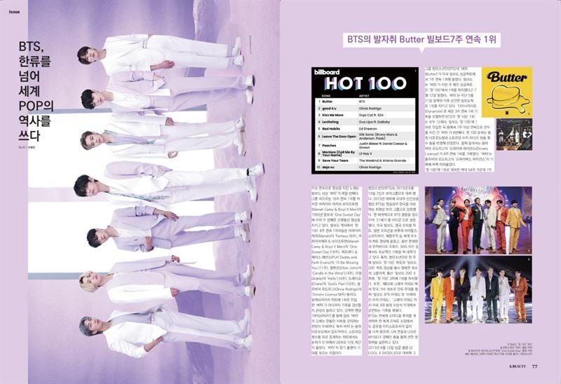 이번 ‘K-BEAUTY’ 8월호에서는 ‘광복절’ 특집과 세계 POP의 역사를 새로 쓰고 있는 BTS(방탄소년단)를 특집으로 다뤘으며, 커버 스토리에는 ’K-BEAUTY’가 뽑은 아름다운 셀럽으로 선정 된 트로트 가수 조정민의 인터뷰 내용이 실렸다.