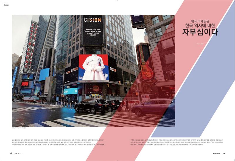 특히 8월 광복절을 기념해 특집으로 세계 POP 역사를 새로 쓰고 있는 BTS의 활약상과 케이팝 아이돌의 글로벌 화력을 담았으며 지난 3.1절 뉴욕 타임스퀘어 전광판에 한복 광고(모델 배우 전효성)를 올린 라카이코리아 신정헌 대표와 특별 인터뷰를 소개했다.