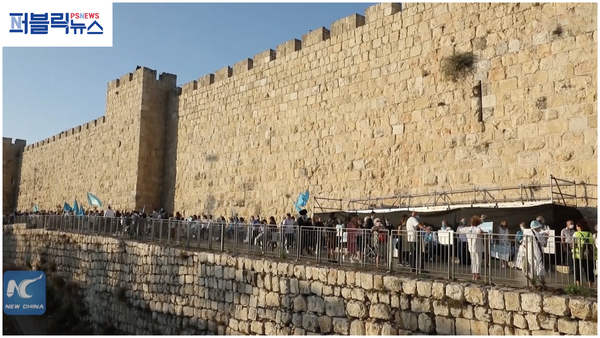 이들은 동예루살렘의 구시가지 성벽 주변에 인간 사슬을 만들고 평화를 위한 노래를 불렀다.