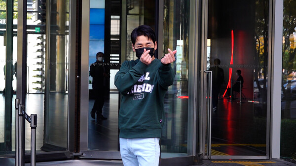 박군이 25일 오전 마포구 상암동 SBS프리즘 타워에서 진행되는 '더트롯쇼'에 출현하기 위해 현장에 도착해 포타타임을 가졌다.