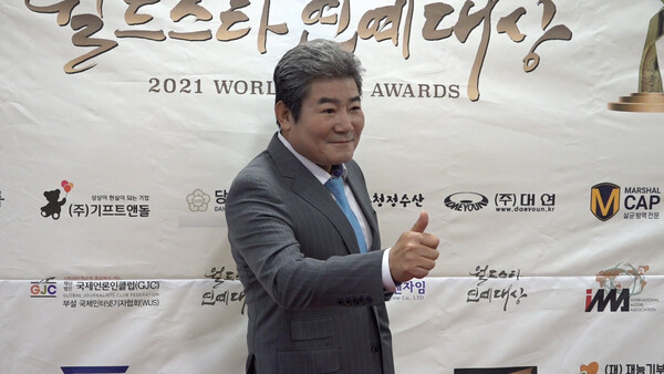 가수 진성이 지난 21일 일산 빛마루 방송센터에서 개최된 2021월드스타연예대상에서 가수부문 대상을 수상했다.