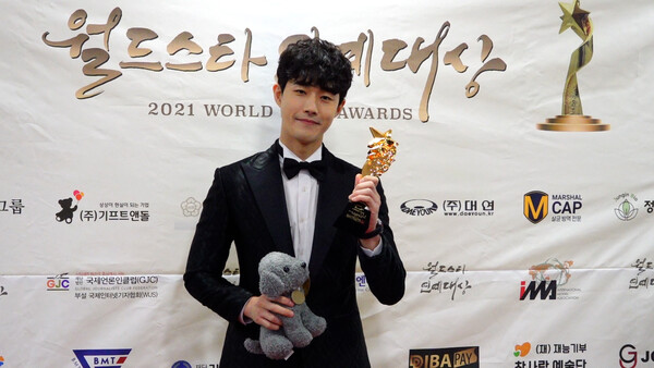 배우 김호창이 지난 21일 일산 빛마루 방송센터에서 개최된 2021월드스타연예대상에서 드라마부문 우수상을 수상했다.