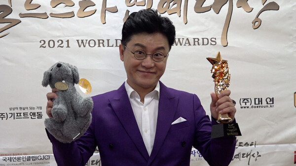 개그맨 김학도가 지난 21일 일산 빛마루 방송센터에서 개최된 2021월드스타연예대상에서 개그부문 특별상을 수상했다.