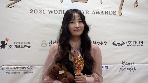 가수 더데이지가 지난 21일 일산 빛마루 방송센터에서 개최된 2021월드스타연예대상에서 OST부문 우수상을 수상했다.