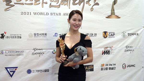 배우 나예린이 지난 21일 일산 빛마루 방송센터에서 개최된 2021월드스타연예대상에서 영화배우부문 기대주상을 수상했다.