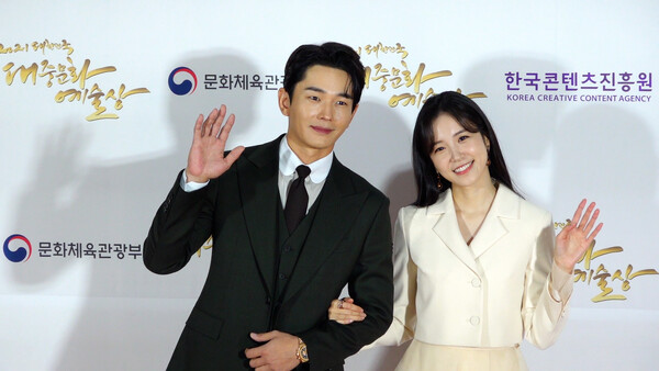 온주완 배우와 장예원 방송인이 28일 오후 서울 중구 국립극장 해오름극장에서 열린 '2021 대한민국 대중문화예술상'에서 MC를 맡았다.