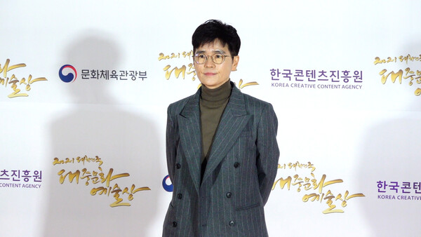 노희경이 28일 오후 서울 중구 국립극장 해오름극장에서 열린 '2021 대한민국 대중문화예술상'에서 보관문화훈장을 수상했다.