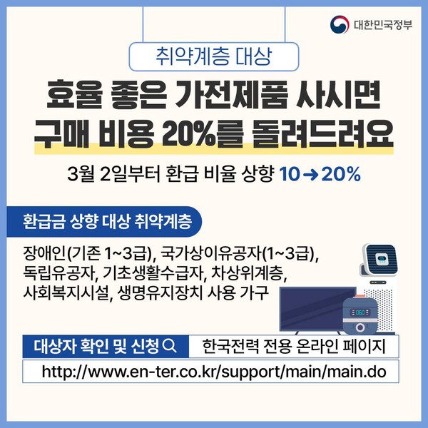 ☞ 대상자 확인 및 신청 : 한국전력 전용 온라인 페이지