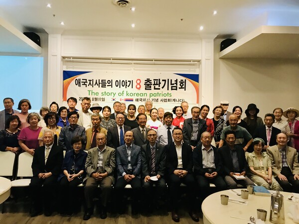[퍼블릭뉴스=박정은 기자] 캐나다 애국지사기념사업회(회장 김대억)가 지난 10일 오후 6시(현지시간) 토론토에서 ‘애국지사들의 이야기’(신세림刊) 제8권 출판기념회를 성황리에 개최했다. 이 자리에는 토론토 총영사관의 권태한 부총영사와 유건인 민주평통토론토협의회장 등이 참석해 관계자들을 격려했다.