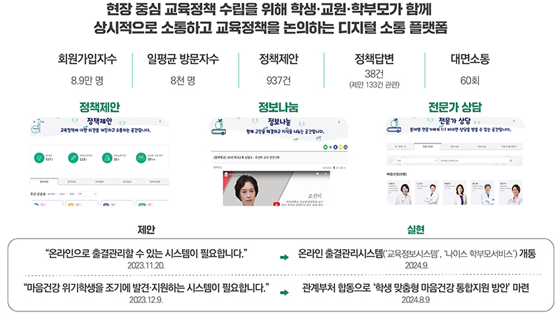 이를 위해 학생·학부모·교원을 비롯한 국민과 소통하고자 다양한 온·오프라인 채널을 활용하는 등 적극적으로 노력하고 있다.